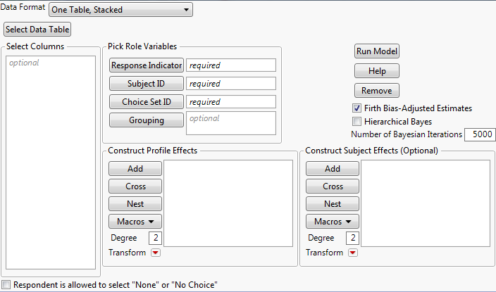 Note: The choice model observes the column coding property of continuous profile and subject effects.