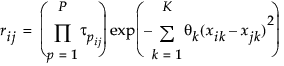 There is a τ parameter for each combination of levels of a categorical variable, where τij corresponds to the unique combination formed by the observed levels of subject i and subject j. Thus, the covariance element, rij, depends on the combination of levels of the categorical predictors obtained from the ith and jth observations. For more information, see Qian et al. (2012).