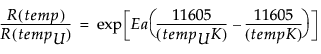 where RU is the reaction rate at use temperature tempU, RU x AF(temp) is the reaction rate at a general temperature temp, and for temp > tempU, AF(temp) > 1