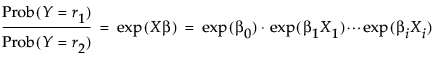 Note that exp(βi(Xi + 1)) = exp(βiXi) exp(βi). This shows that if Xi changes by a unit amount, the odds is multiplied by exp(βi), which we label the unit odds ratio. As Xi changes over its whole range, the odds are multiplied by exp((Xhigh - Xlow)βi), which we label the range odds ratio. For binary responses, the log odds ratio for flipped response levels involves only changing the sign of the parameter. Therefore, you might want the reciprocal of the reported value to focus on the last response level instead of the first.