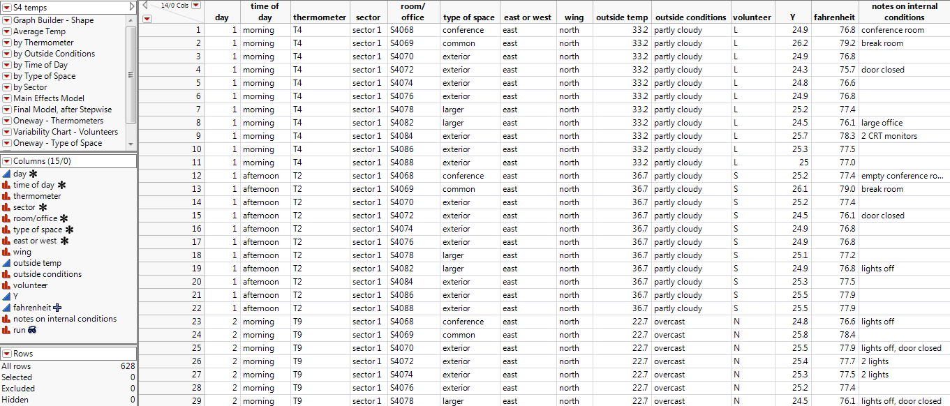 First, data was collected and input into a data table (S4 Temps.jmp). Note the Room/Office column. It contains the unique names for each office and was assigned the Map Role to correctly define the map files.