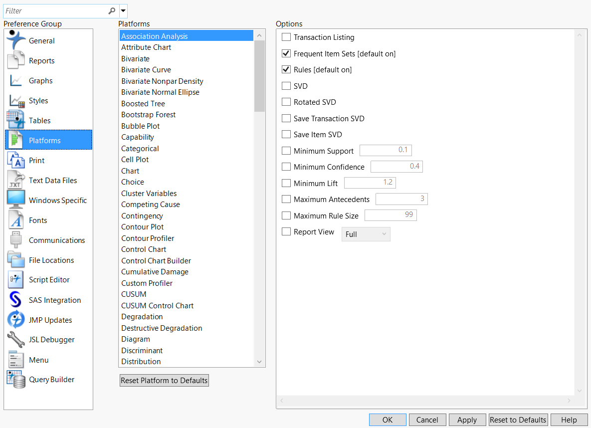 Click Reset Platform to Defaults to return the selected platform options to the default settings.