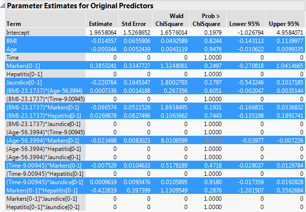 Click on the row for (Age - 56.3994)*Markers[0-1] in the Parameter Estimates for Original Predictors report.