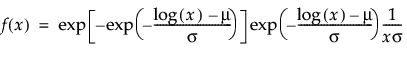 Returns the probability density function (pdf) evaluated at x of the largest extreme value distribution with location mu and scale sigma. The pdf is parameterized as follows: