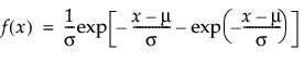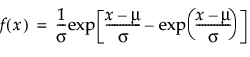 Returns the probability density function (pdf) evaluated at x of the smallest extreme distribution with location mu and scale sigma. The pdf is parameterized as follows: