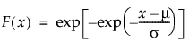 Returns the cumulative distribution function (cdf) evaluated at x of the smallest extreme distribution with location mu and scale sigma. The cdf is parameterized as follows: