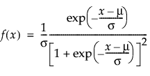 Returns the probability density function (pdf) evaluated at x of a logistic distribution with location mu and scale sigma. The pdf is parameterized as follows:
