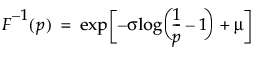 Returns the pth quantile from a loglogistic distribution with location mu and scale sigma. The quantile function is parameterized as follows: