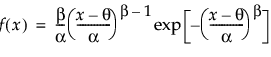Returns the probability density function (pdf) evaluated at x of the Weibull distribution. The pdf is parameterized as follows: