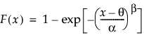 Returns the cumulative distribution function (cdf) at x of the Weibull distribution. The cdf is parameterized as follows: