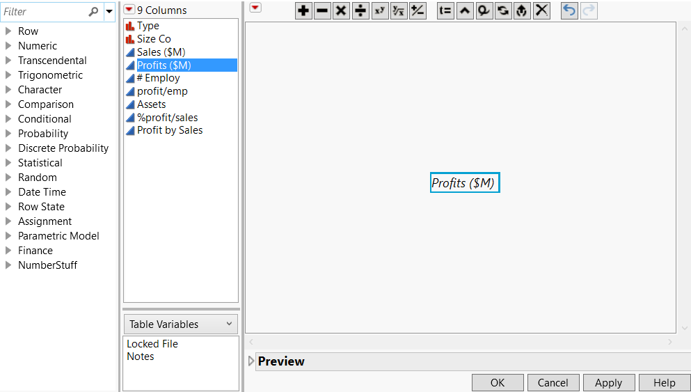 The following example shows how to re-create a formula column in the Companies.jmp sample data table.
