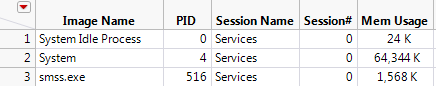 You can also print the task list directly without using cmd.exe and then import the task list into a data table.