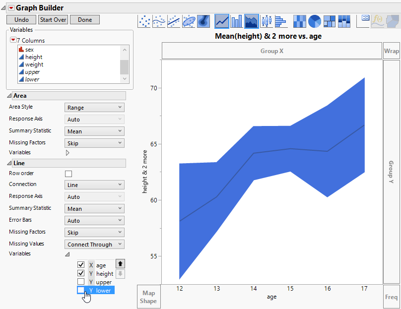 In the Line options, click the triangle next to Variables. De-select Y upper and Y lower. See Figure 4.28.