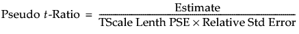 When relative standard errors are not equal, the TScale Lenth PSE is computed. This value is the PSE of the estimates divided by their relative standard errors. The Pseudo t-Ratio is calculated as follows: