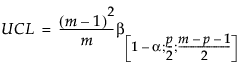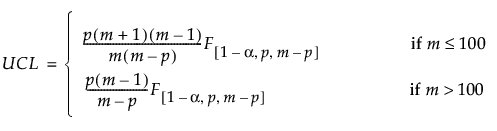 When computing Phase II control limits, new observations are independent of the historical data set. In this case, the upper control limit (UCL) is a function of the F distribution and partially depends on the number of observations in the historical data set from which the targets are calculated. The UCL is defined as follows: