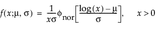 The lognormal family is parameterized by a location parameter, μ, and a shape parameter, σ. The lognormal pdf and cdf are given as follows, where the logarithm is to the base e: