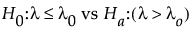 is the mean number of defects per unit in the sample. We assume T to be approximately normally distributed. The power calculation is based on the distribution of T under the null and alternative hypotheses.where Φ() is the standard normal cumulative distribution function and Z1-p is the (1 - p)th quantile of the standard normal distribution.
