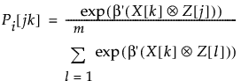 Then, the probability of a given choice for the k'th subject to the j'th choice of m choices is: