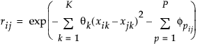 The saved variance formula uses the previously defined parameterization of R, except when the model includes categorical predictors. When the Gaussian Process model includes categorical predictors, the saved variance formula uses the following parameterization of R: