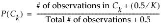 Note: In the formula for P(Ck), 0.5 is the prior bias factor. This value is the default value. To change the prior default factor, go to File > Preferences > Platforms > Naive Bayes, select the Prior Bias check box and change the value.