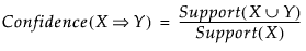 This section defines the performance measures used in Association Analysis. Denote the condition item set by X and the consequent item set by Y. Denote an association rule with condition set X and consequent set Y by