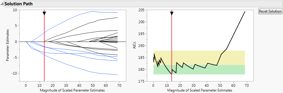 An Adaptive Elastic Net with AICc Validation report appears. The Solution Path is shown in Figure 6.3.