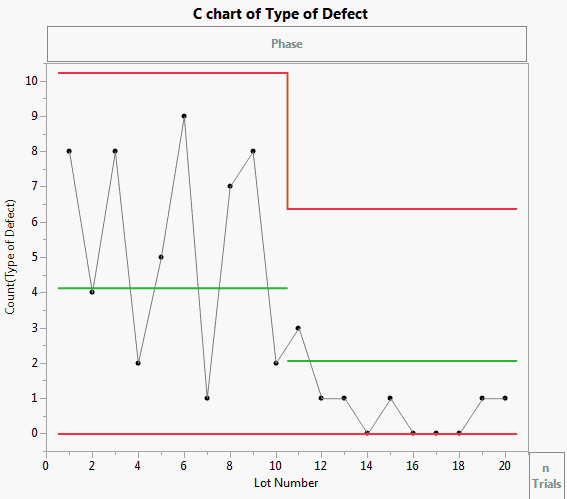 The Cabinet Defects.jmp sample data table contains data concerning the various defects discovered while manufacturing cabinets over two time periods.