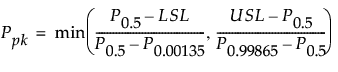 Denote the α*100th percentile of the fitted distribution by Pα. Then Percentile method capability indices are defined as follows: