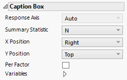 displays a summary statistic value on the plot. The summary statistic corresponds to the variable that corresponds to the axis that you specify as the Response Axis in the Caption Box options.