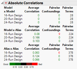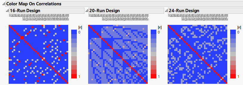 You want to compare these three designs. Notice that the 16-Run Design table is active.