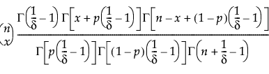 The Beta Binomial distribution results from assuming that x|π follows a Binomial(n,π) distribution and π follows a Beta(α,β). The Beta Binomial has parameters p = α/(α+β) and δ = 1/(α+β+1). The parameter δ is a dispersion parameter. When δ > 0, there is over dispersion, meaning there is more variation in x than explained by the Binomial alone. When δ < 0, there is under dispersion. When δ = 0, x is distributed as Binomial(n,p). The Beta Binomial exists only when