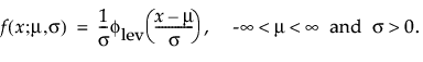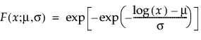 This right-skewed distribution can be used to model failure times if σ is small relative to μ > 0. This distribution is not commonly used in reliability but is useful for estimating natural extreme phenomena, such as a catastrophic flood heights or extreme wind velocities. The pdf and cdf are: