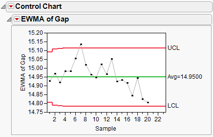 Select Analyze > Quality and Process > Control Chart > EWMA.