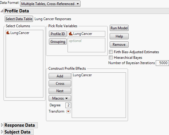 Notice Lung Cancer Responses.jmp has only one column (Lung Cancer) with two rows (Cancer and NoCancer).