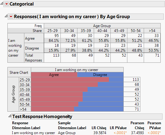 Click the Categorical red triangle and select Test Response Homogeneity.