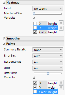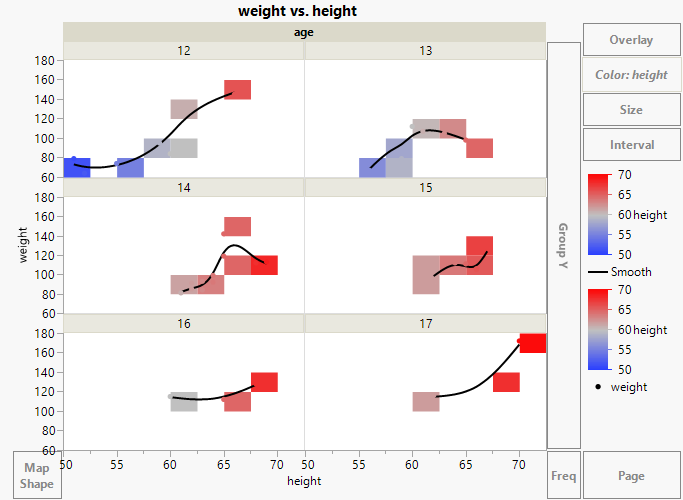 Figure 3.33 Graph of height and weight Colored by height