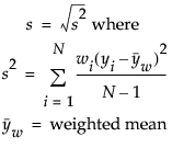 The standard error of the mean. It is the standard deviation divided by the square root of N. If a column is assigned the role of weight, then the denominator is the square root of the sum of the weights.