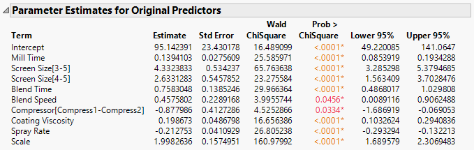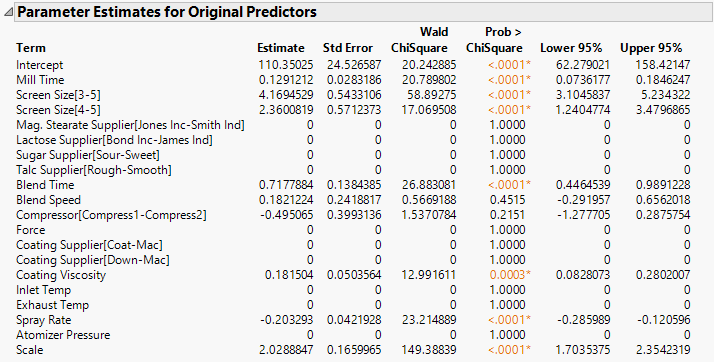 If you prefer not to work through the steps in this section, click the green triangle next to the Generalized Regression Reduced Model script in the Tablet Production.jmp data table to obtain the reduced model.
