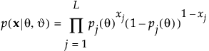 where p(x|θ, ϑ) is the probability of a response vector x given the subject ability θ and the vector of item parameters ϑ. The number of item parameters depends on the model used (1PL, 2PL, or 3PL).