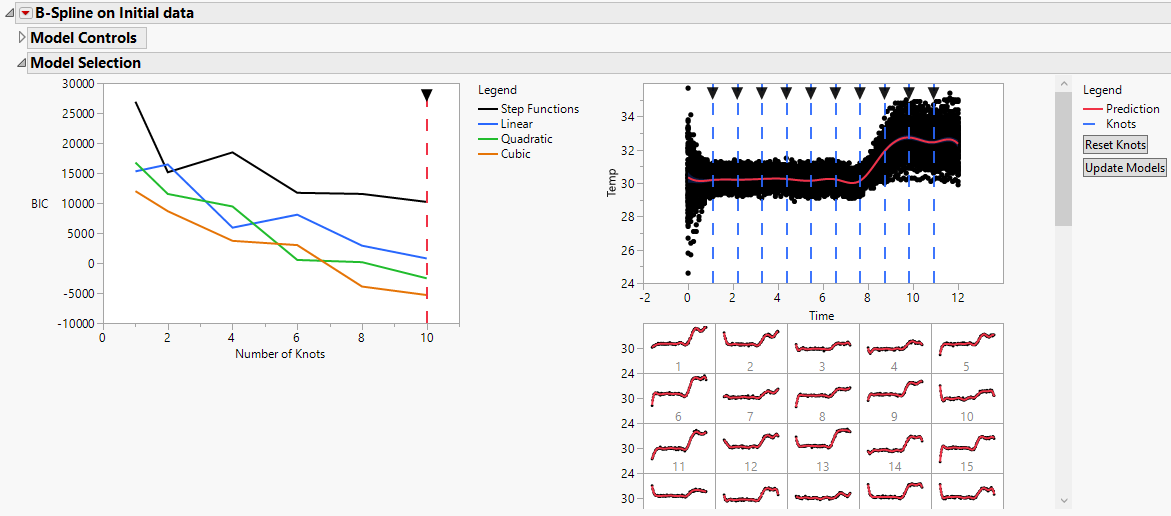 Data preprocessing tools are available in the FDE platform, including several types of transformations for output data and alignments for input data. A surrogate model is created by fitting a B-spline, P-spline, or Fourier basis model to the data. When a model is fit, functional principal components analysis (functional PCA) is automatically performed on the surrogate model. Results from the functional PCA, such as the functional scores, can be saved to a separate data table and used for feature extraction or dimension reduction.