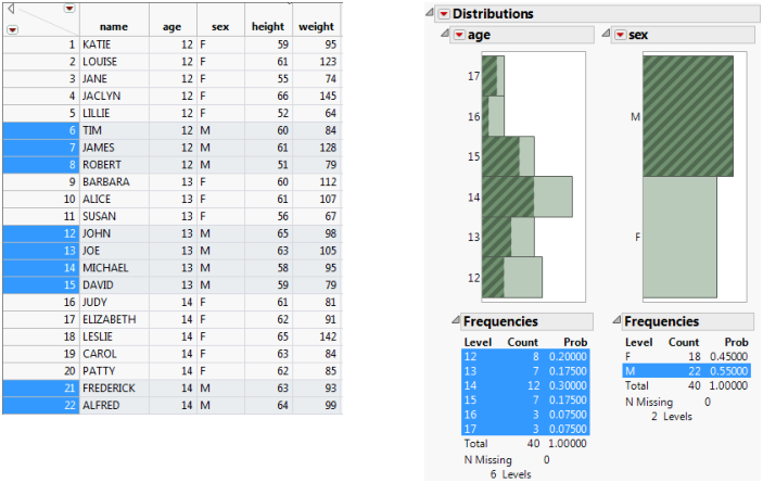 Figure 8.1 Example of a JMP Report Window and Data Table