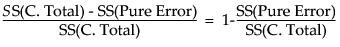 The Pure Error SS is the total of the sum of squares values for each replicated group of observations. The Pure Error SS divided by its DF estimates the variance of the response at a given predictor setting. This estimate is unaffected by the model. In general, if there are g groups, each with identical settings for each effect, the Pure Error SS, denoted SSPE, is as follows: