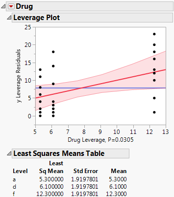 Figure 3.1 Leverage Plot and LS Means Table for Drug