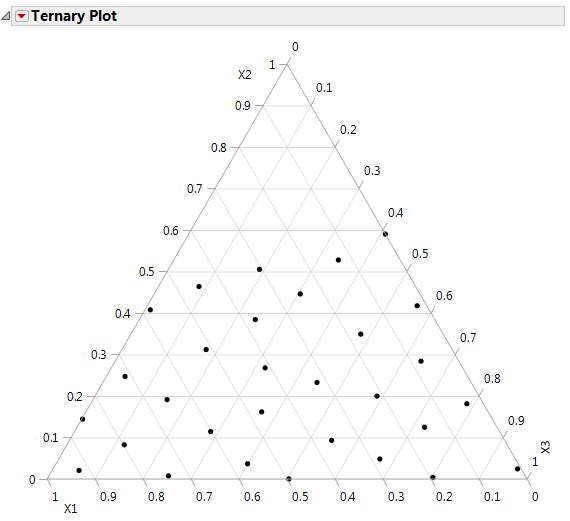 The final design points can be obtained by using the default MaxPro (maximum projection) optimality criterion or by selecting the Centroid criterion. You can find these options under FFF Optimality Criterion in the report’s red triangle menu.