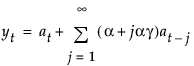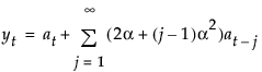 The smoothing equation, Lt = αyt + (1 – α)Lt-1, is defined in terms of a single smoothing weight α. This model is equivalent to an ARIMA(0, 1, 1) model where the following is true:
