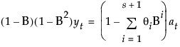 This model is equivalent to a seasonal ARIMA(0, 1, s+1)(0, 1, 0)s model defined as follows: