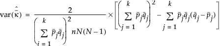 xij = number of ratings on part i (i = 1, 2,...,n) into level j (j=1, 2,...,k)The individual category Kappa is as follows: