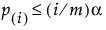 The p-values adjusted for the false discovery rate, denoted p(i), FDR, are computed as: