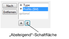 Um die Sortierreihenfolge für die Gewinne in Profits ($M) in absteigend zu ändern, wählen Sie Profits ($M) und klicken Sie dann auf die Schaltfläche für die absteigende Sortierreihenfolge.