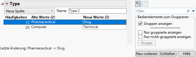 Wählen Sie die Spalte Type aus, indem Sie einmal auf die Spaltenüberschrift klicken.